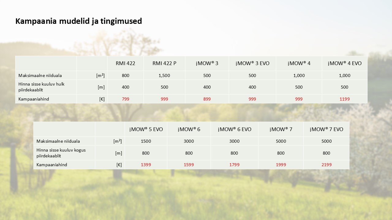 Superhinnaga robotniidukit soovid? Lisaks TASUTA paigaldus? Ikka saab, STIHL iMOW on Sinu valik, kui ootad kvaliteeti, töökindlust ja lihtsust. Tutvu meie mudelivaliku ja kampaaniapakkumisega!